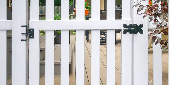 GATES: Matching gates & hardware are available for all of DMV's vinyl privacy fence, The Richmond.